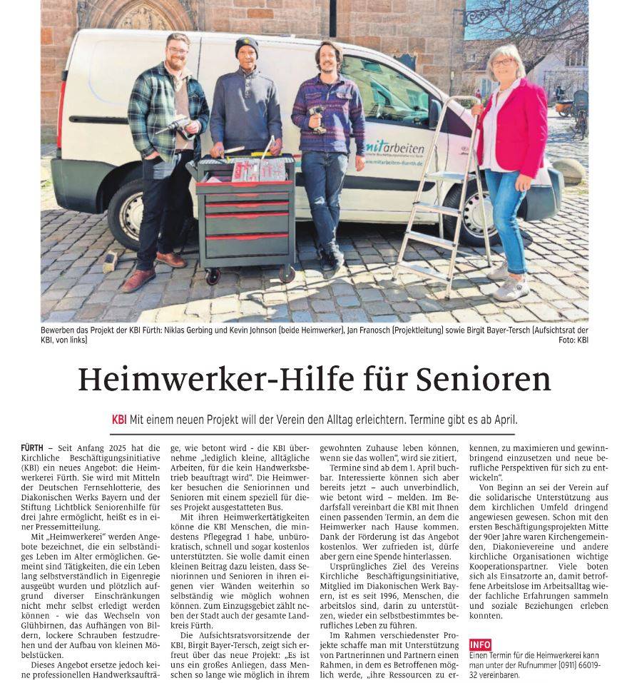 Neues Projekt „Heimwerkerei Fürth“ wird vorgestellt - Artikel in den Fürther Nachrichten vom 26.03.2025
