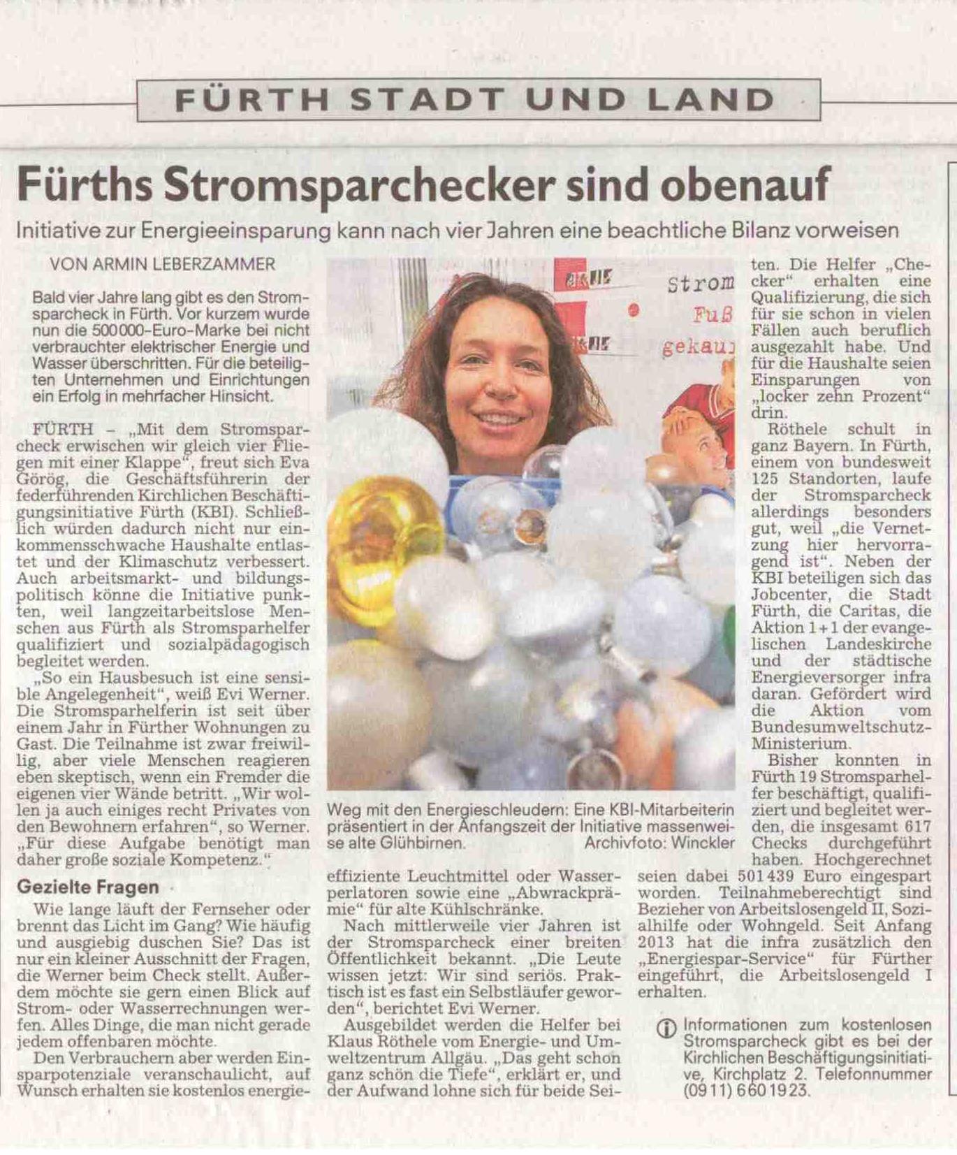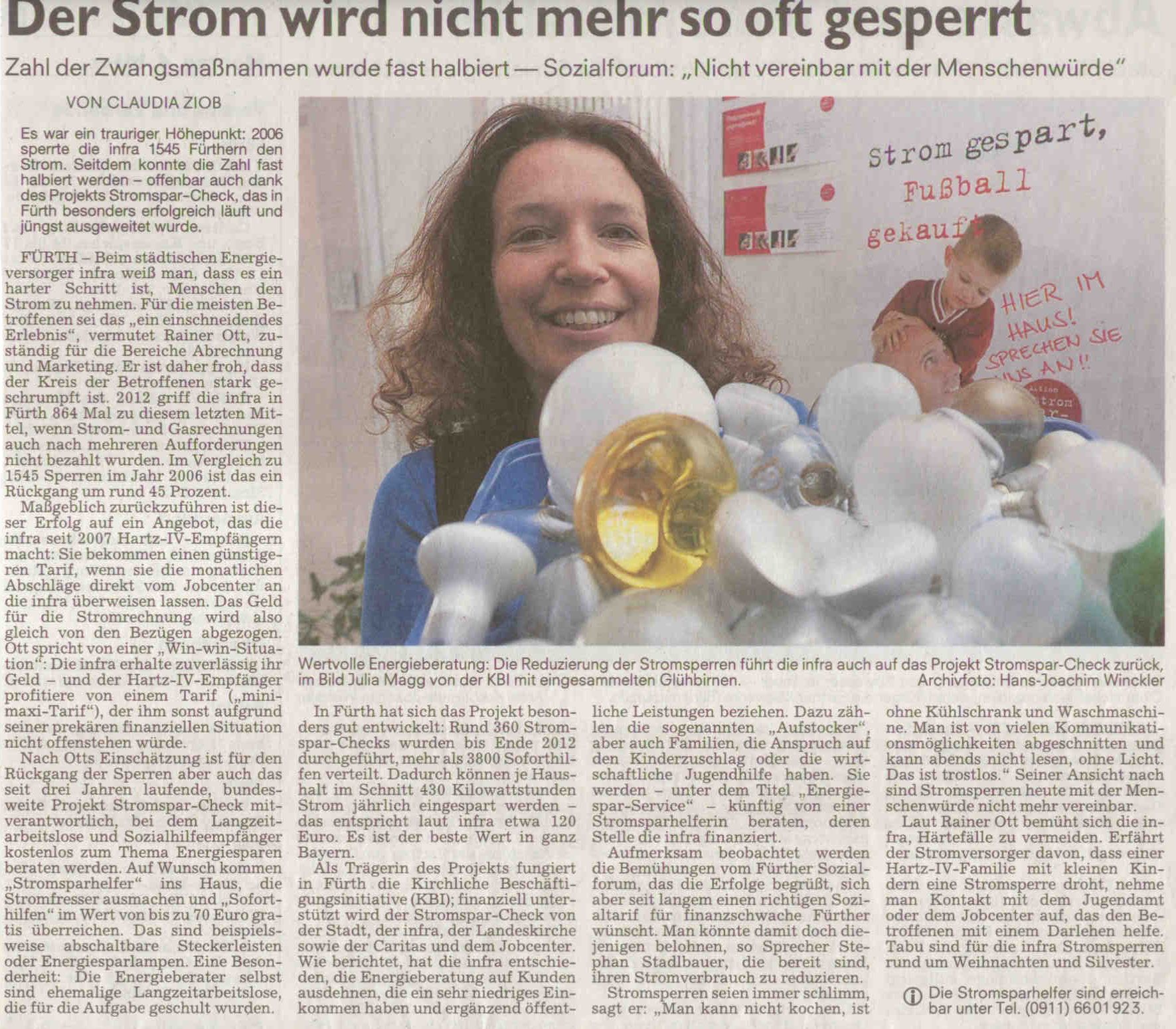 Stromspar-Check - Artikel in den Fürther Nachrichten vom 04.03.2013