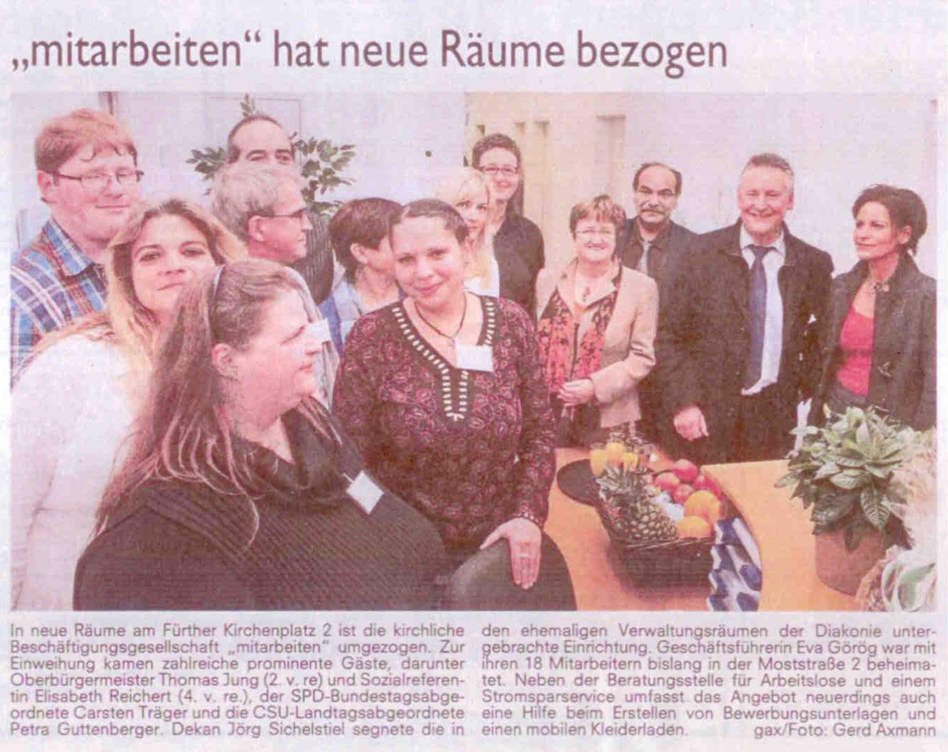 Umzug in unsere neuen Räume am Kirchenplatz 2 - Artikel in den Fürther Nachrichten November 2013