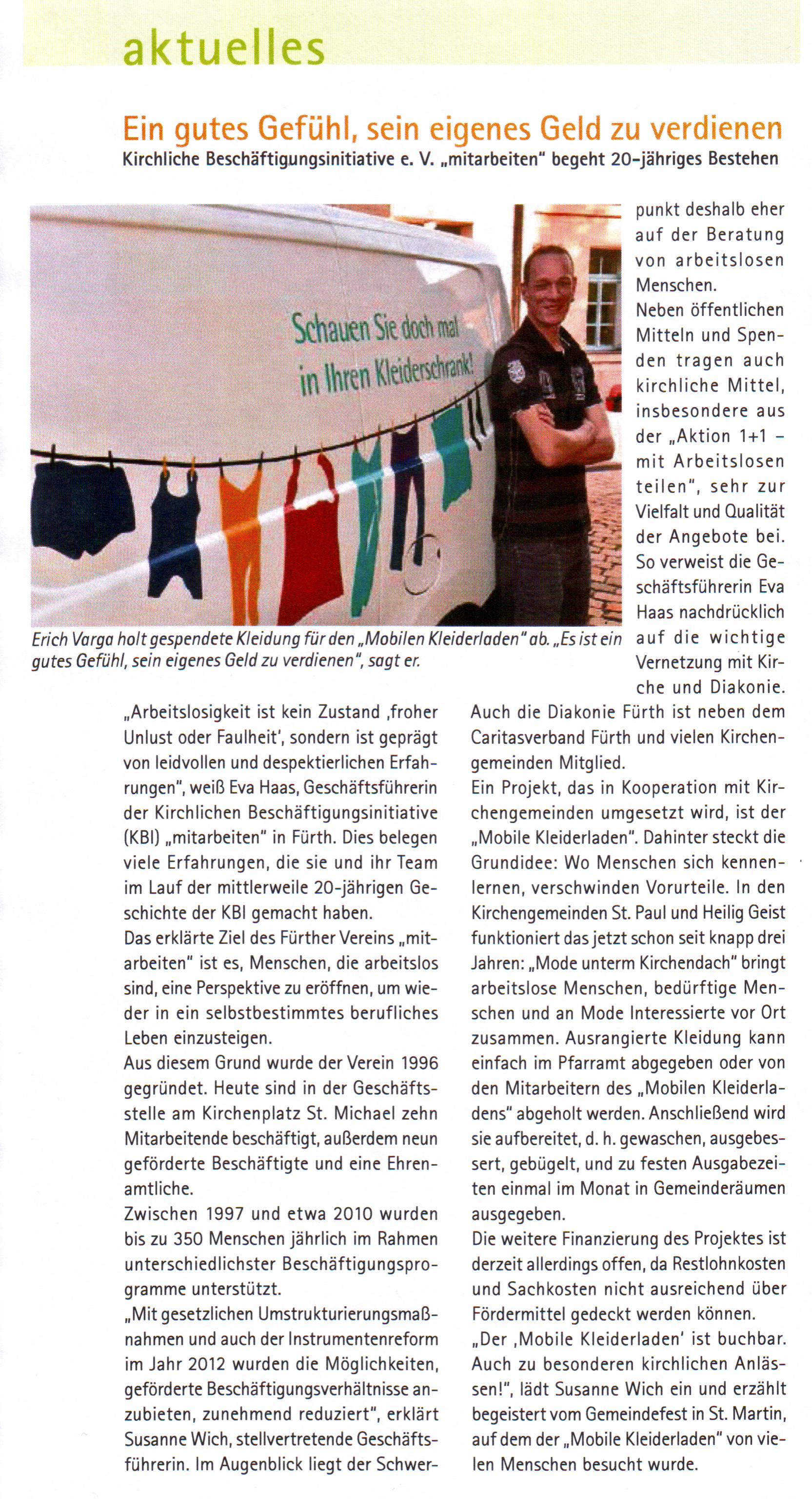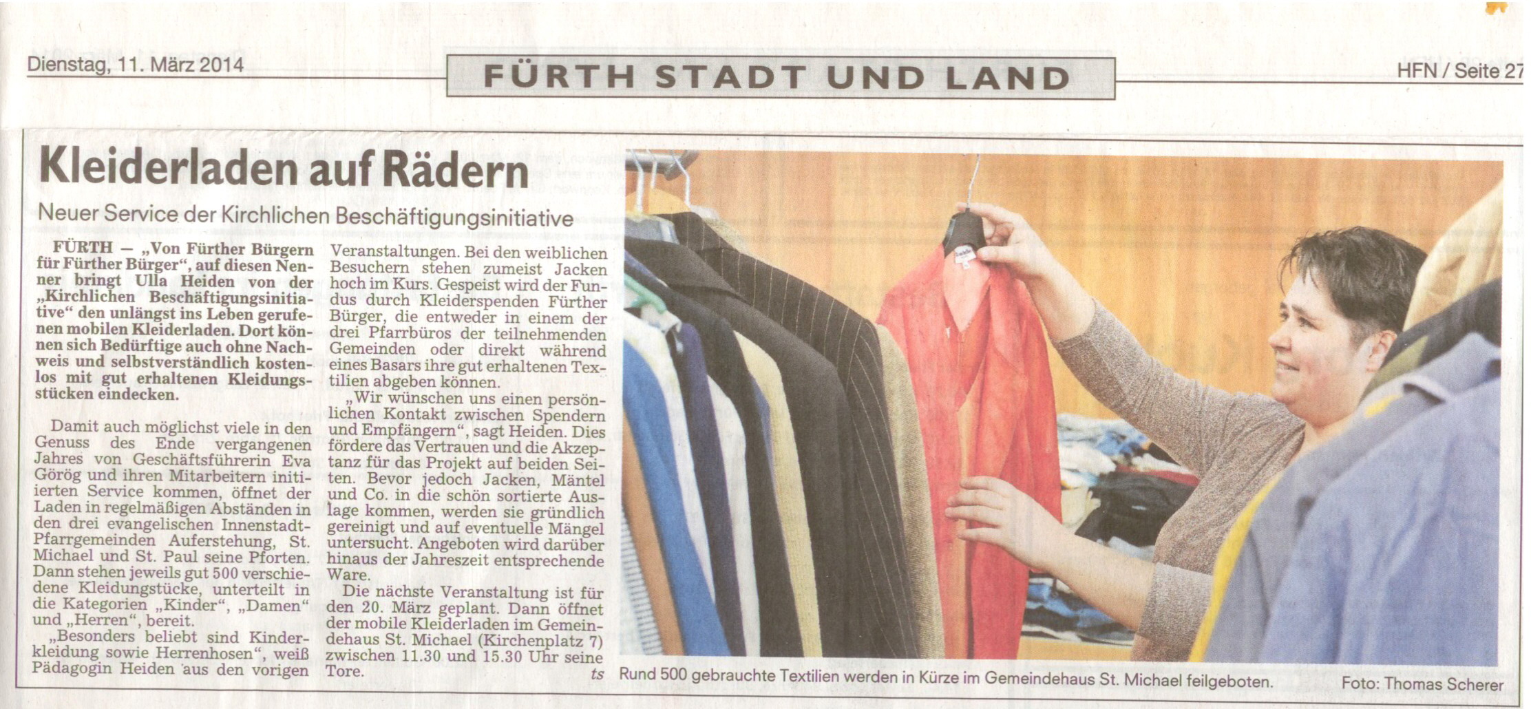 Mobiler Kleiderladen - Artikel in den Fürther Nachrichten vom 11.03.2014