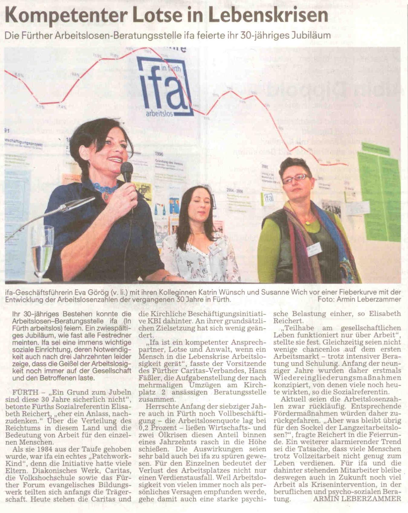 30 Jahre ifa Beratungsstelle - Artikel in den Fürther Nachrichten vom 28.10.2014