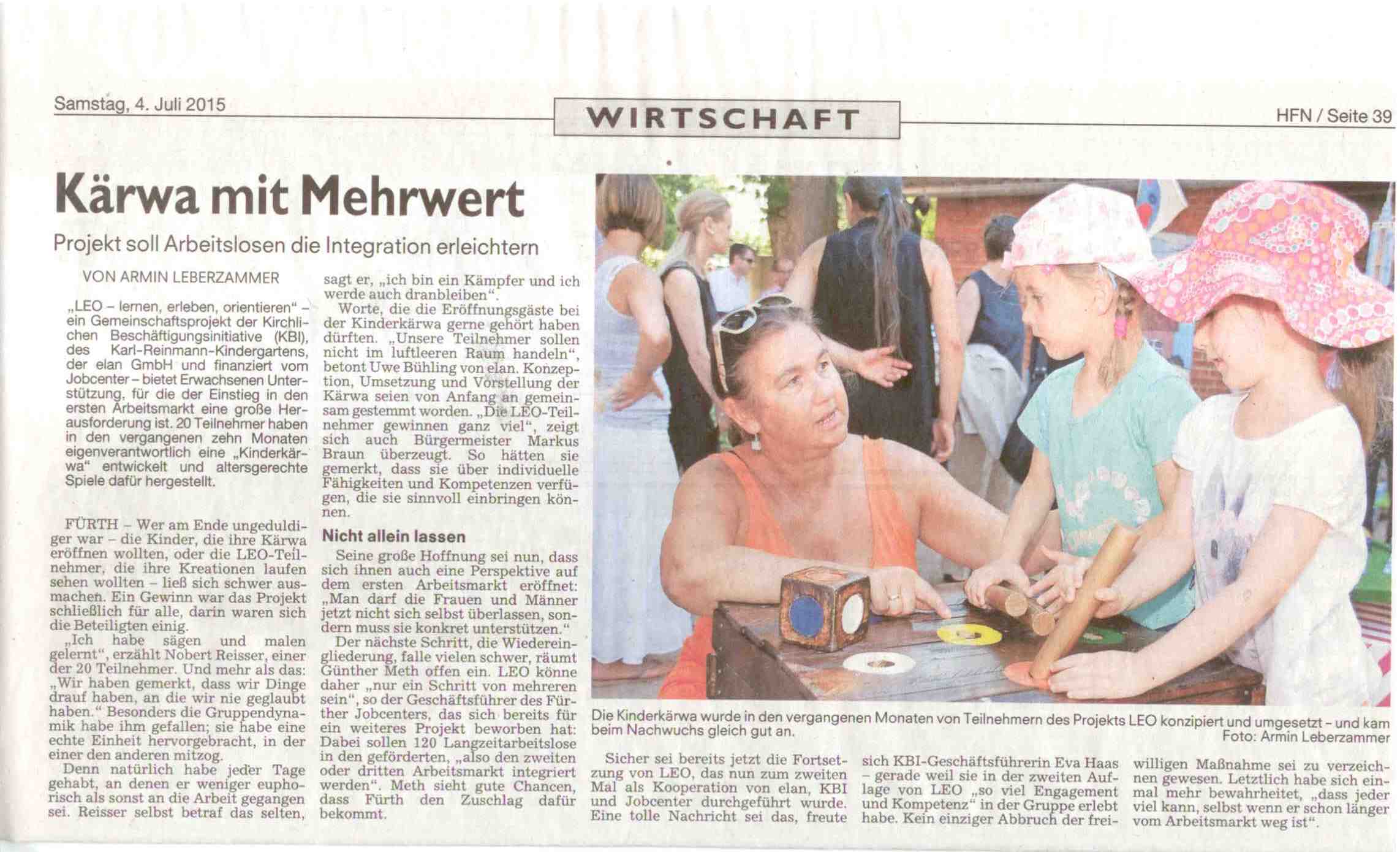 Präsentation unseres Projekts LEO 2 in Kooperation mit elan - Zeitungsartikel aus den Fürther Nachrichten vom 04.07.2015