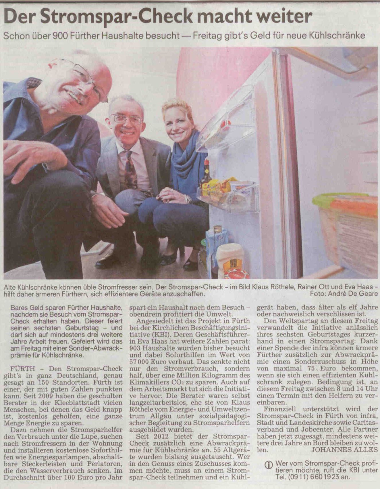 Stromspar-Check - Artikel aus den Fürther Nachrichten vom 27.05.2014
