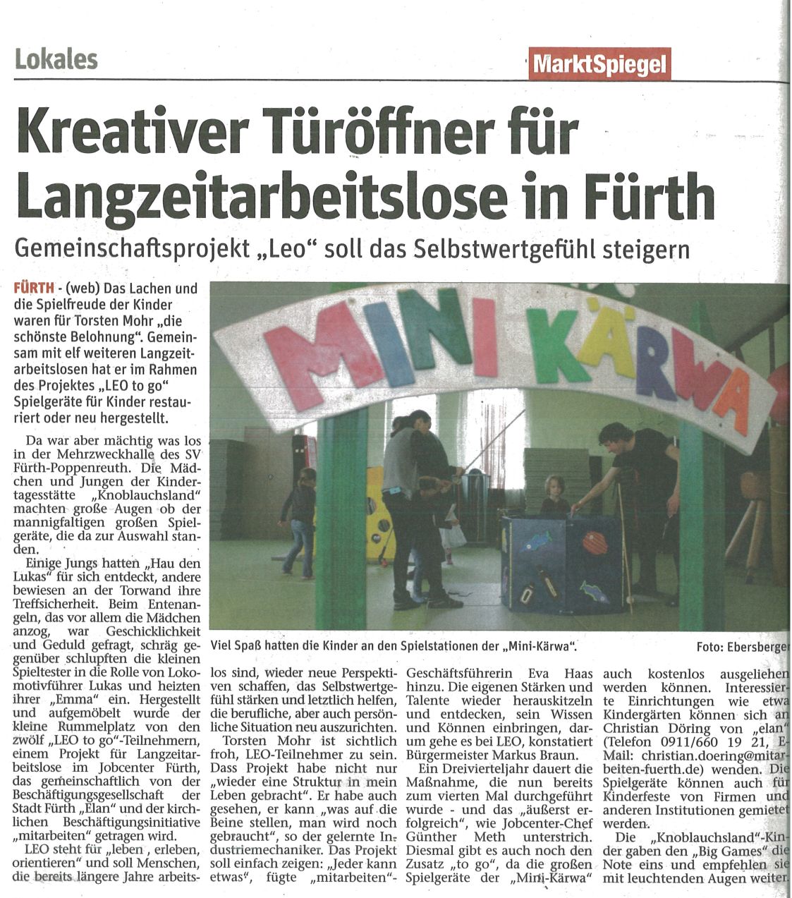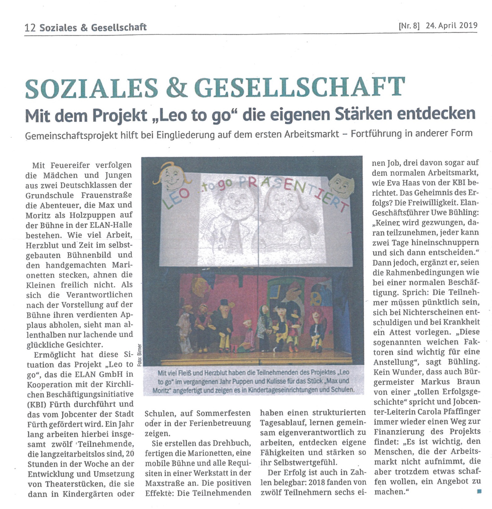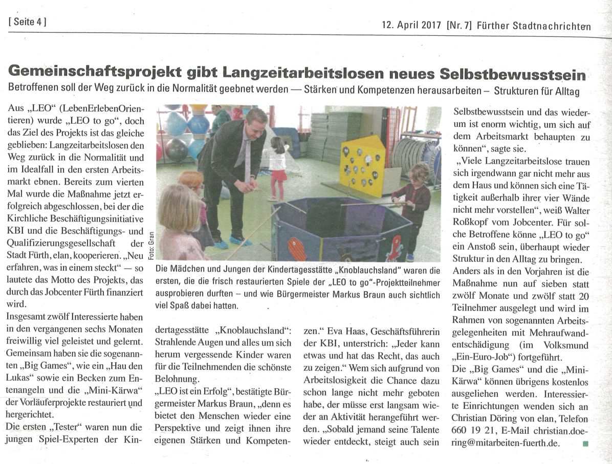 LEO to go in Kooperation mit elan - Artikel in der Fürther Stadtzeitung vom 12.04.2017