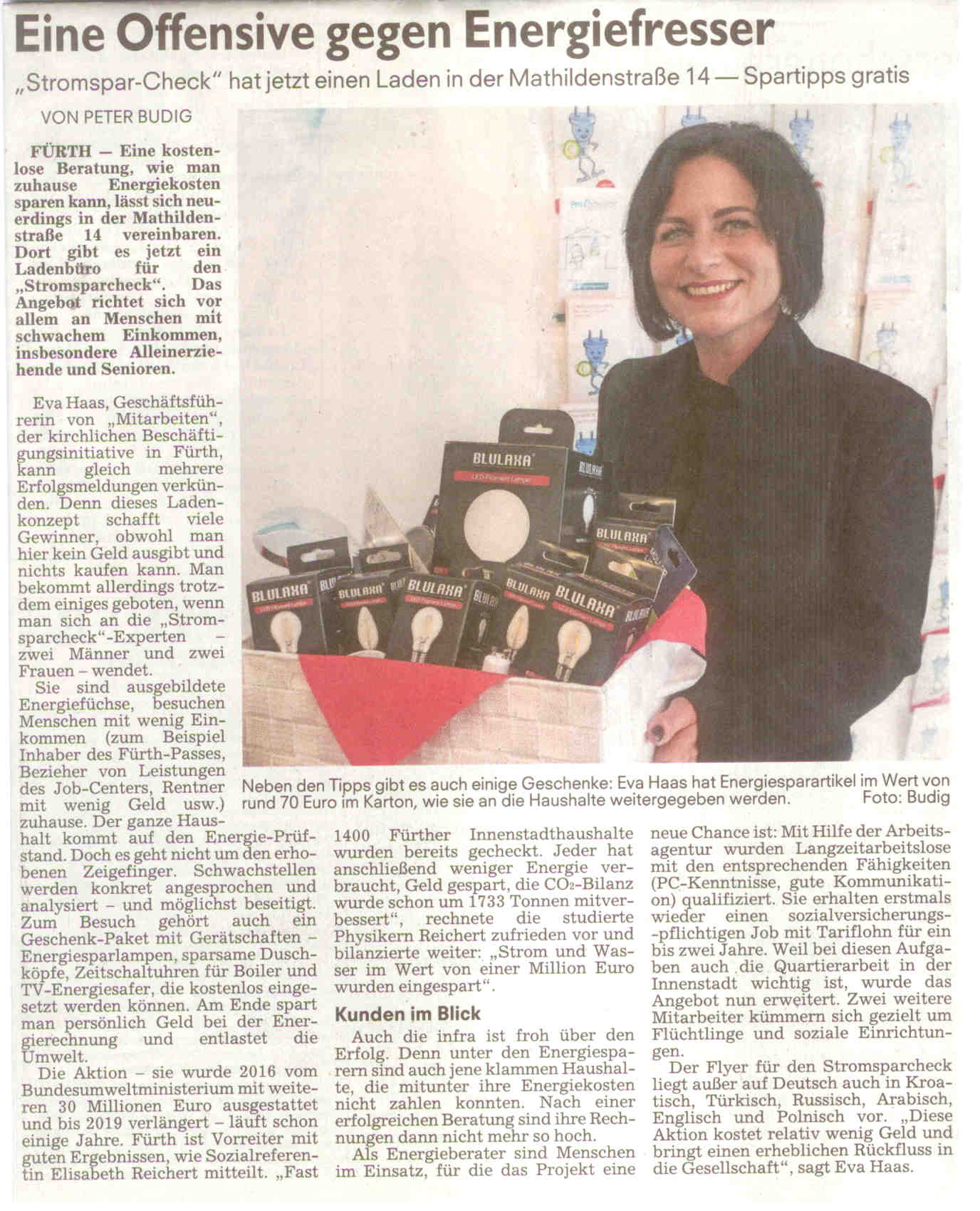 Anleitung zum Stromsparen durch unser Projekt Stromspar-Check - Artikel in den Fürther Nachrichten vom 16.09.2019