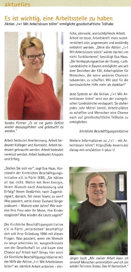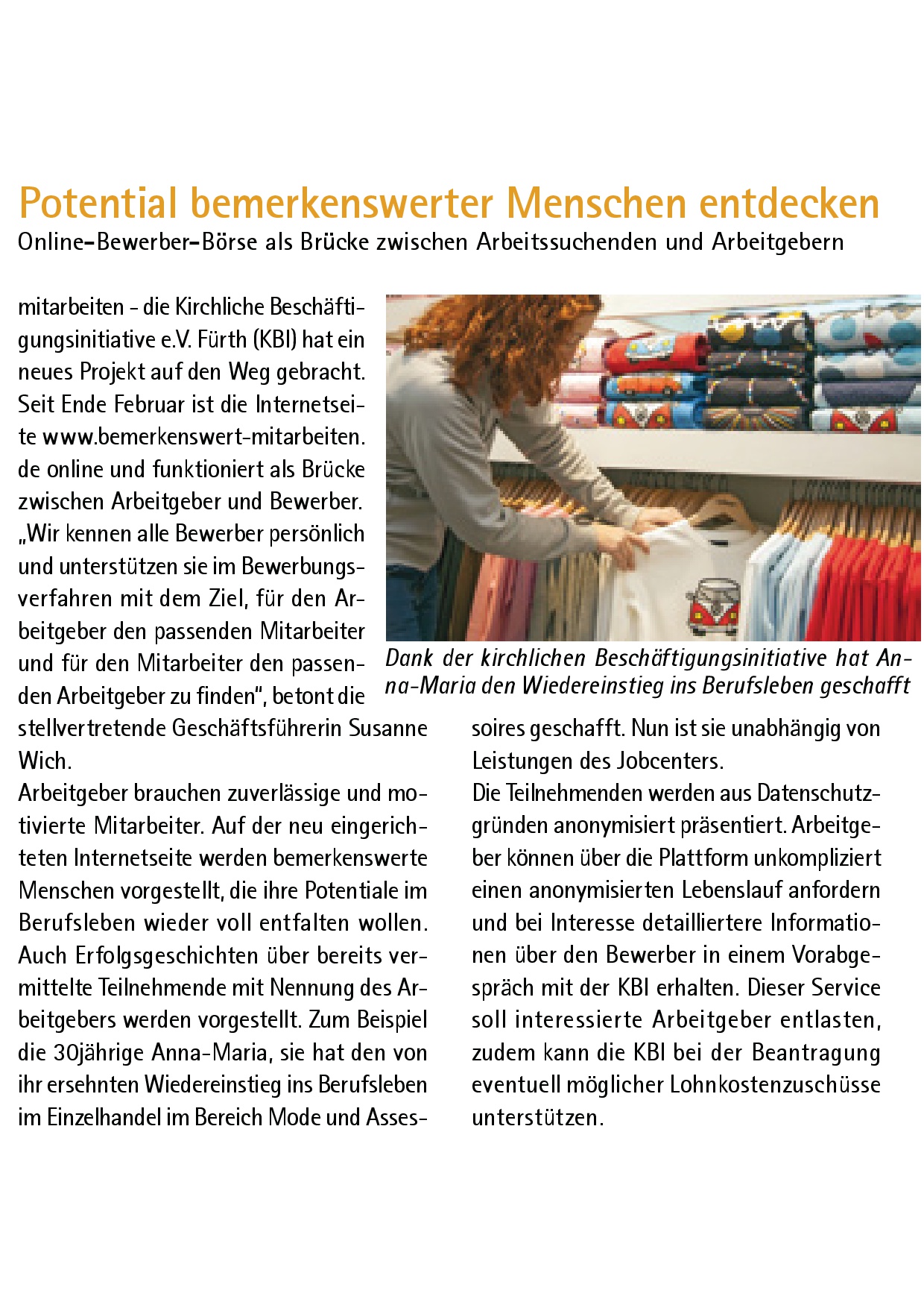 Artikel über geförderte Beschäftigung im Monatsgruß März 2021