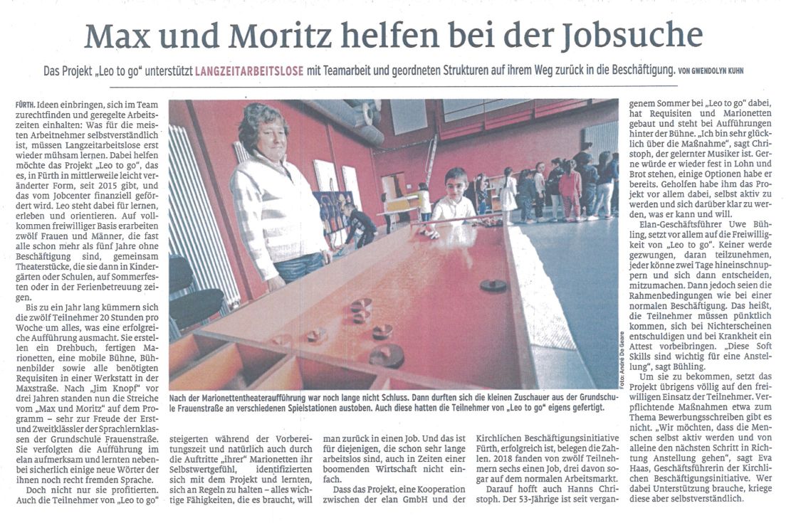 Max und Moritz helfen bei der Jobsuche - LEO to go in den FN am 11.04.2019