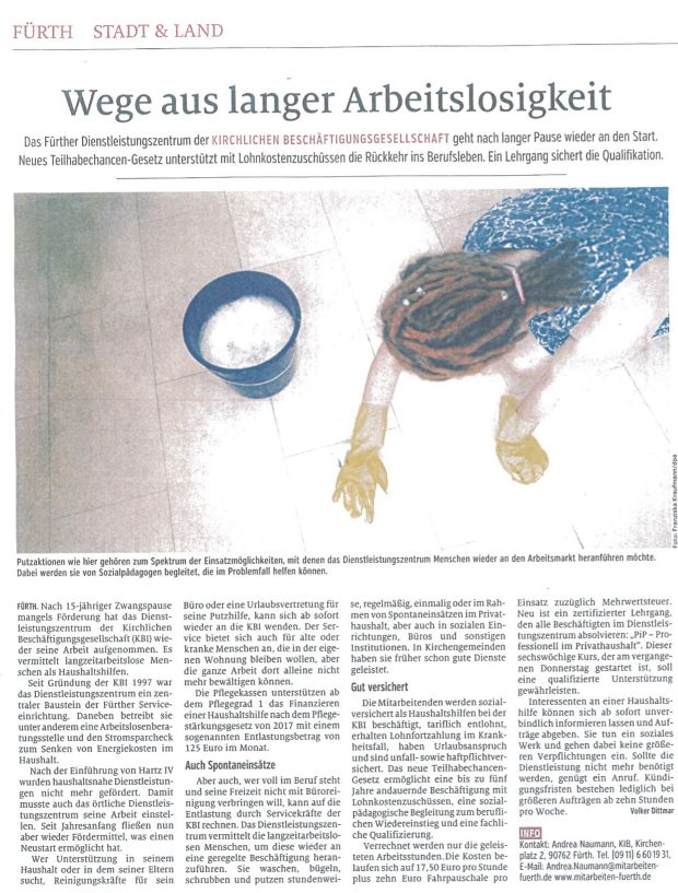 Unser Dienstleistungszentrum und unsere Qualifizierung „Professionell im Privathaushalt“ in den FN am 29.04.2019