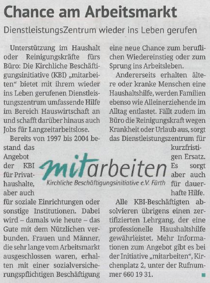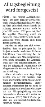 25 Jahre KBI - Artikel in den Fürther Nachrichten vom 06.08.2022