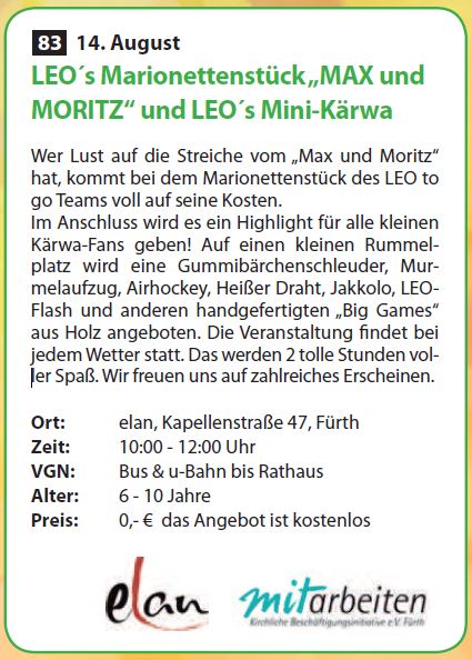 Unser Projekt LEO to go beim Sommerferienprogramm der Stadt Fürth am 13. und 14.08.2019 in Kooperation mit elan GmbH
