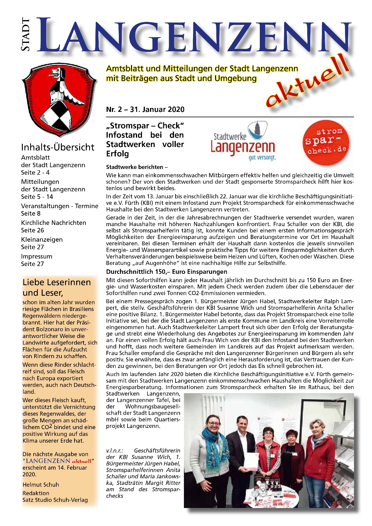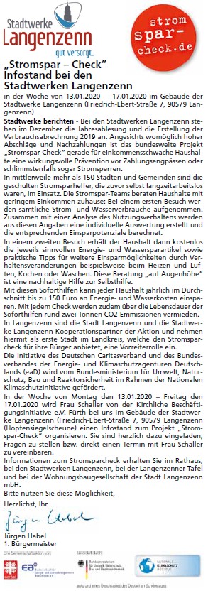 Unser Projekt Stromspar-Check startet in Langenzenn - Artikel im Amtsblatt der Stadt Langenzenn vom 20.12.2019