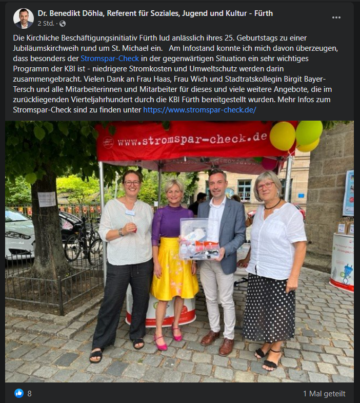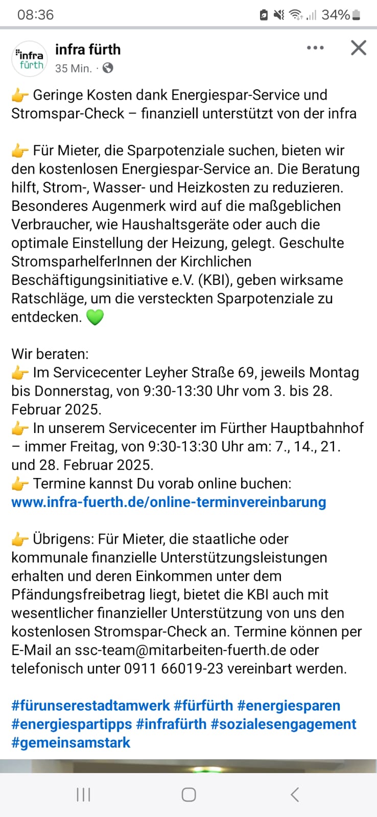 Facebook Post der infra fürth über unseren Stromspar-Check - Post am 29.01.2025