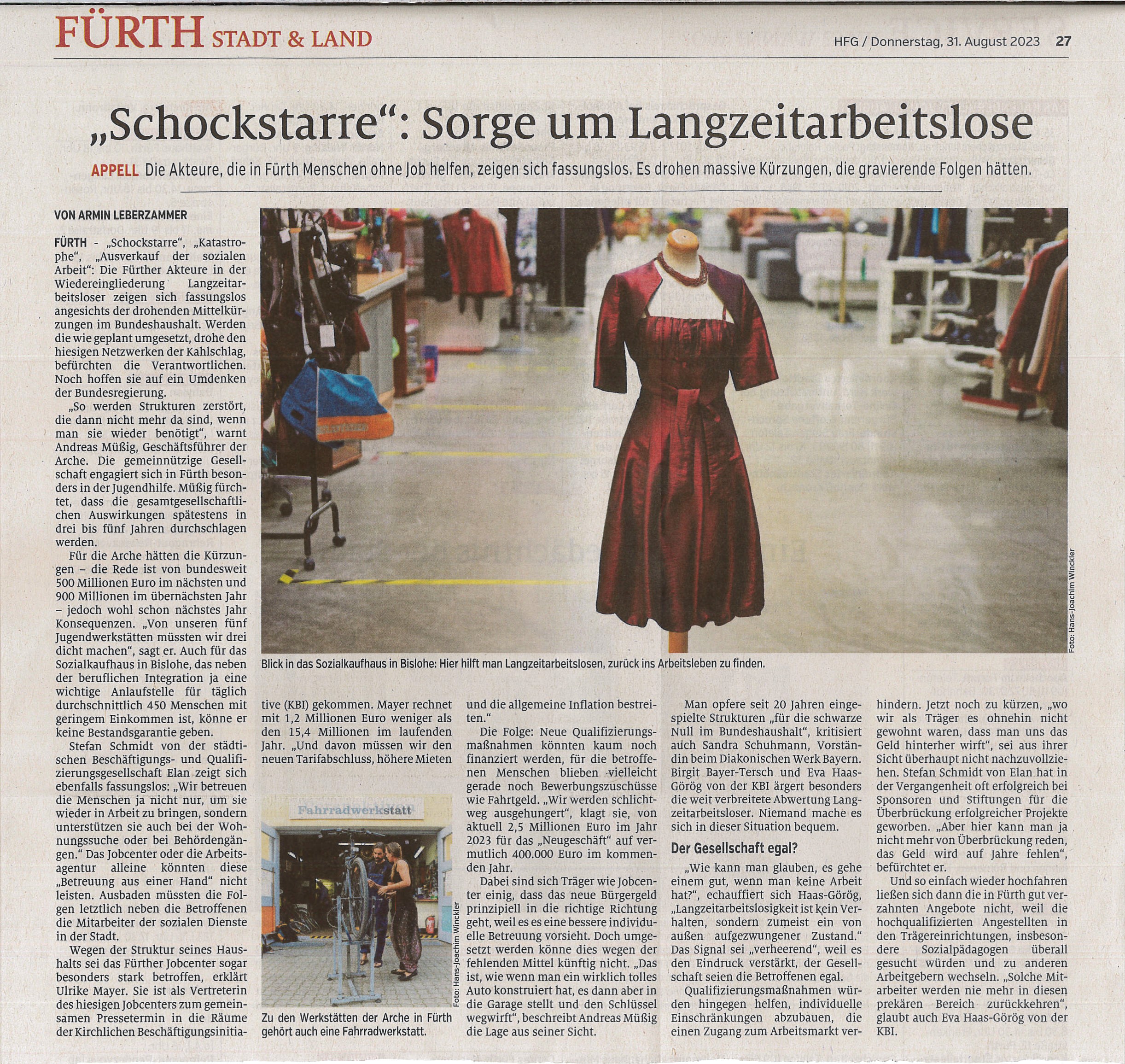 Sorge um Langzeitarbeitslose - Artikel in den FN vom 31.08.2023