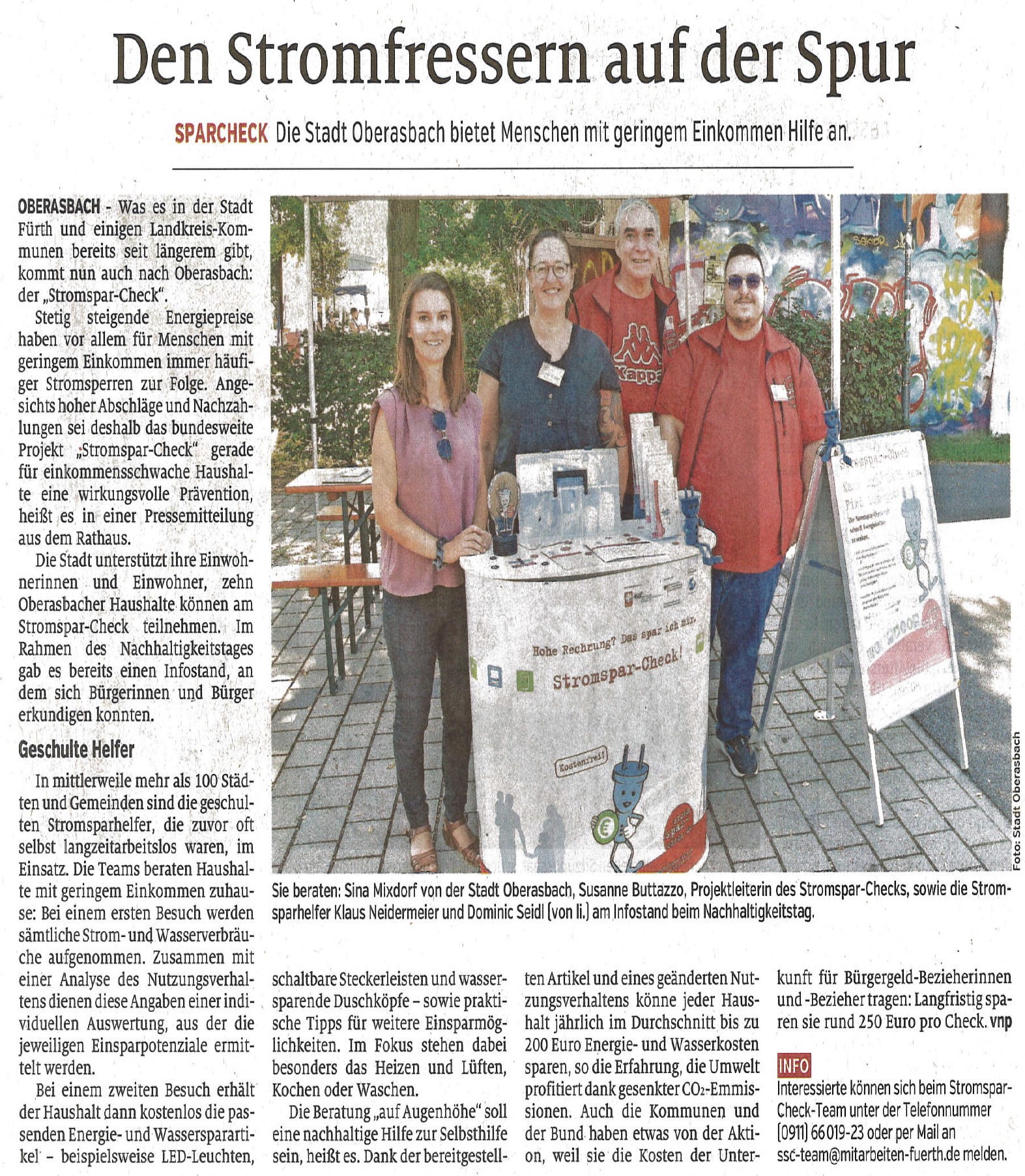 Auftakt zum Stromspar-Check in Oberasbach - Artikel in den FN vom 26.09.2023