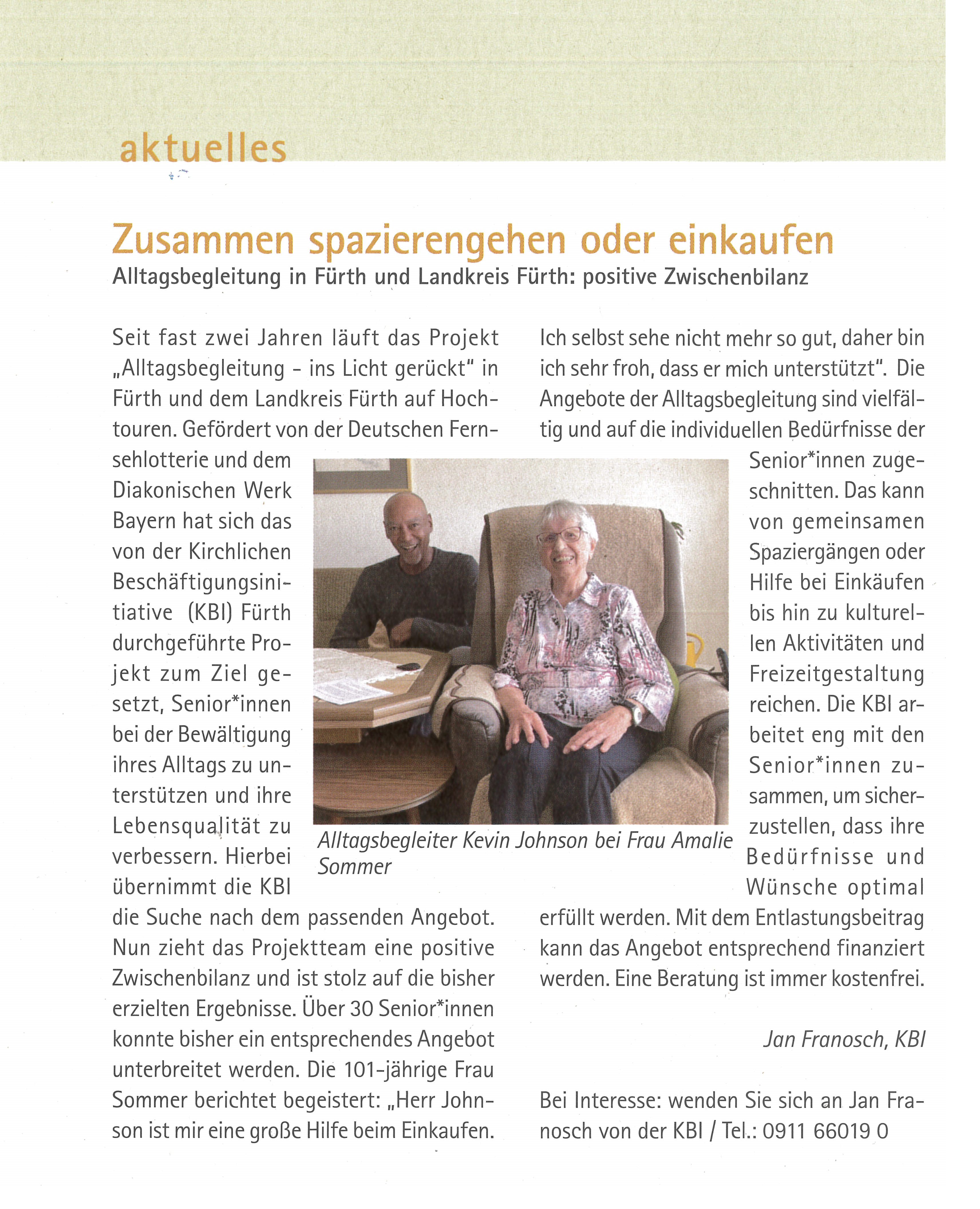 Alltagsbegleitung ins Licht gerückt - Artikel in den Fürther Nachrichten vom 11.07.2022