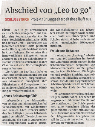 Abschied von unserem Projekt LEO to go - Artikel in den Fürther Nachrichten vom 01.02.2024