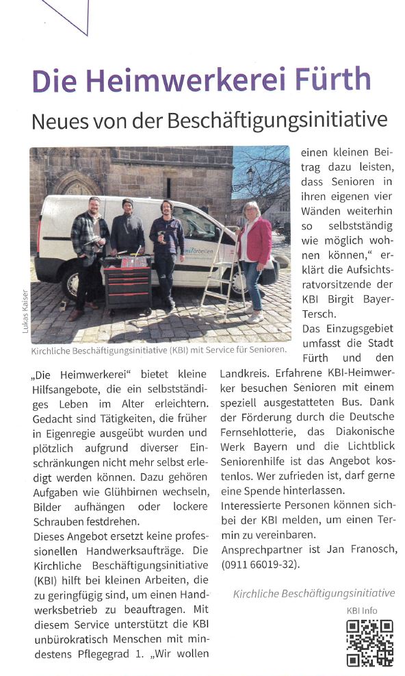 Bericht über das neue Projekt „Heimwerkerei Fürth“ im Monatsgruß vom Mai 2025